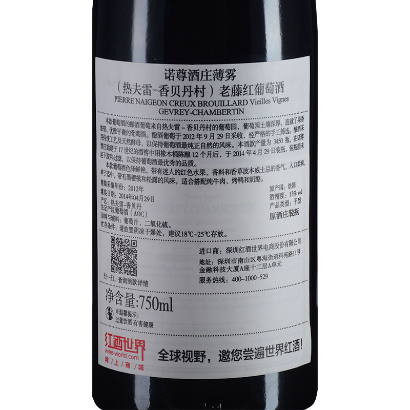 2012年诺尊酒庄薄雾(热夫雷-香贝丹村)老藤红葡萄酒 (法国勃艮第·村庄级)