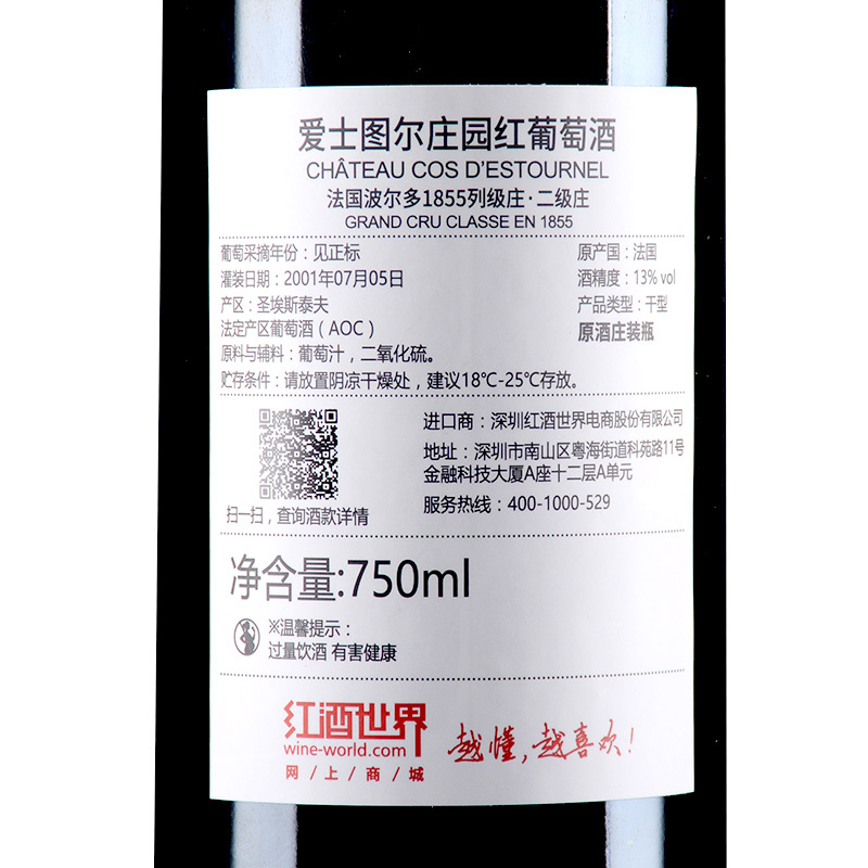 您通过红酒世界·跨境商城购买的商品仅限个人自用,不得再次销售。