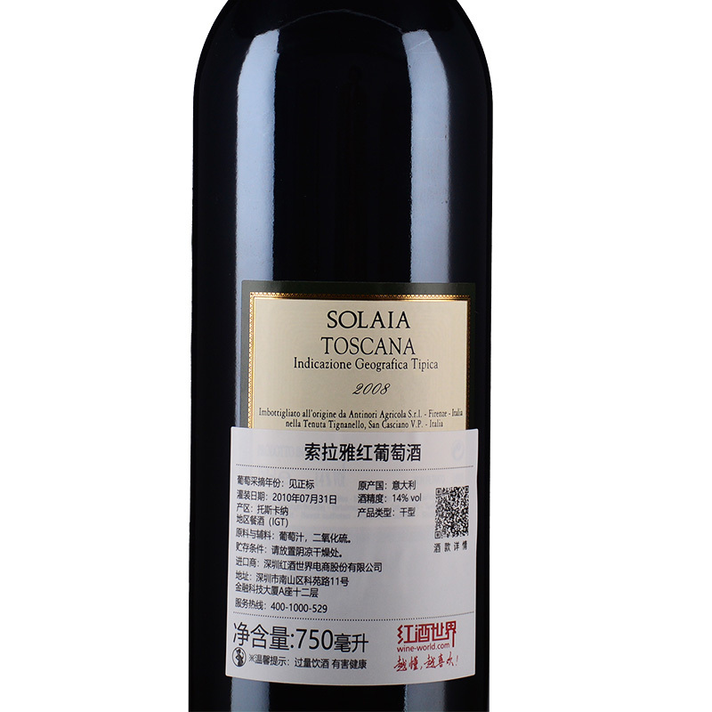 这是一款来自意大利托斯卡纳产区的红葡萄酒。此款酒是一款经典的超级托斯卡纳葡萄酒,于1978年首次酿成,自上市以来一直受到业界的广泛关注与好评。这款2008年份的索拉雅红葡萄酒颜色深邃,展现出惊人的深度与质感。酒款带有黑莓酱、烟熏、泥土和碎石的香气,是一款十分出色的葡萄酒。