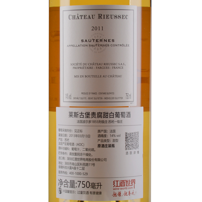 2011年莱斯古堡贵腐甜白葡萄酒 (法国苏玳及巴萨克一级庄)