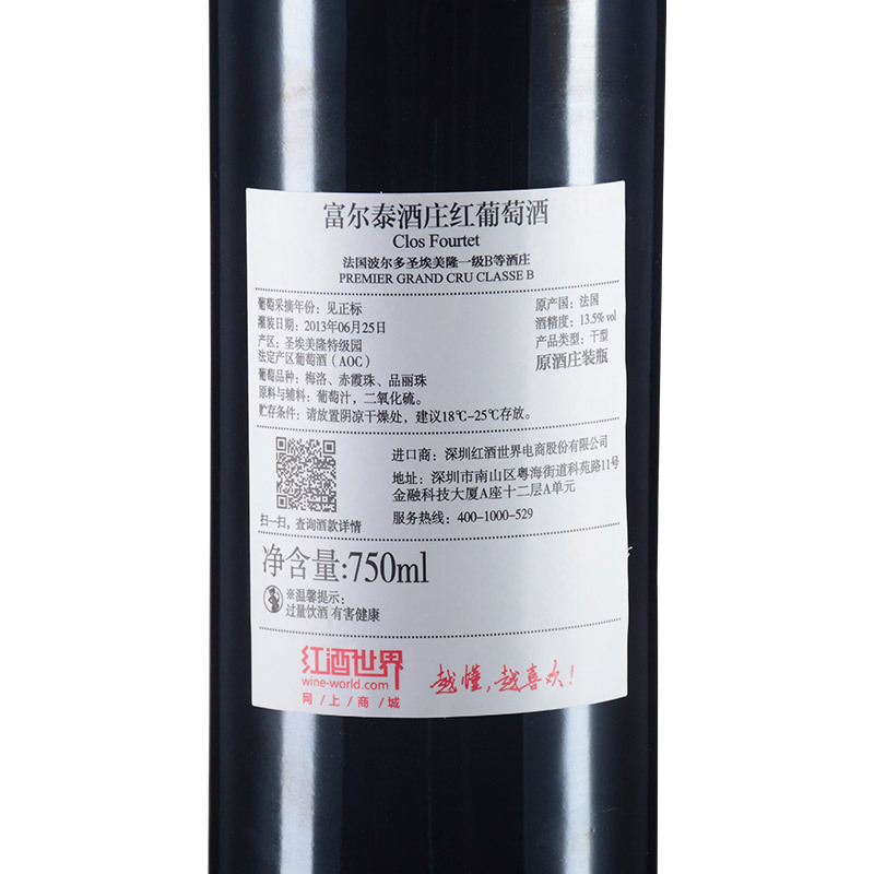 这是一款来自法国波尔多产区的红葡萄酒。这款酒为圣埃美隆列级庄——富尔泰酒庄的正牌酒,是波尔多右岸葡萄酒中的翘楚。葡萄酒呈现出深浓的宝石红色,略带淡淡的紫罗兰、木炭、石墨、黑覆盆子和蓝莓的香气。口感浓郁而丰富,酒体非常饱满,具有层次感,单宁甜美,酸度较低。