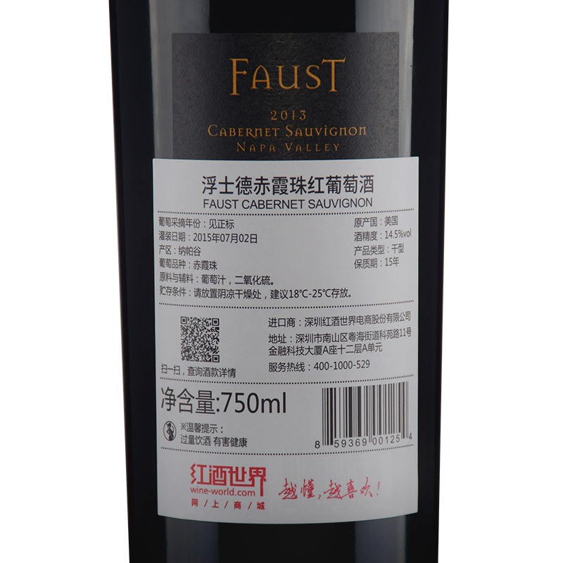 2013年浮士德赤霞珠红葡萄酒