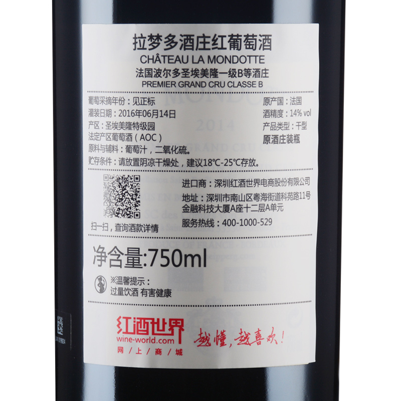 2014年拉梦多酒庄红葡萄酒 (法国圣埃美隆一级B等酒庄)