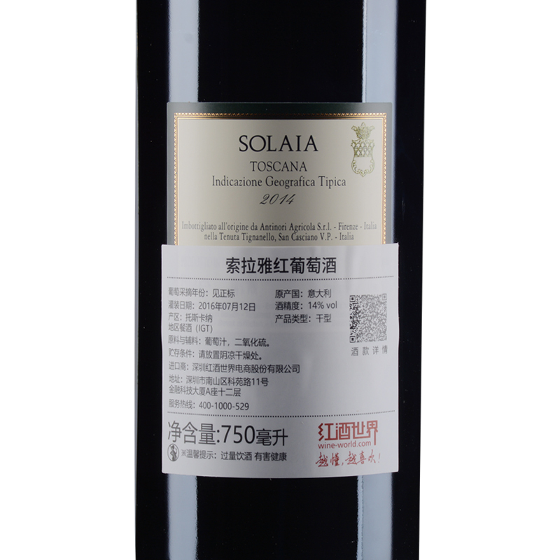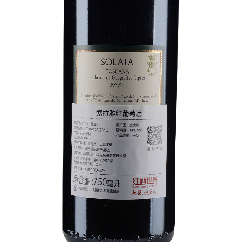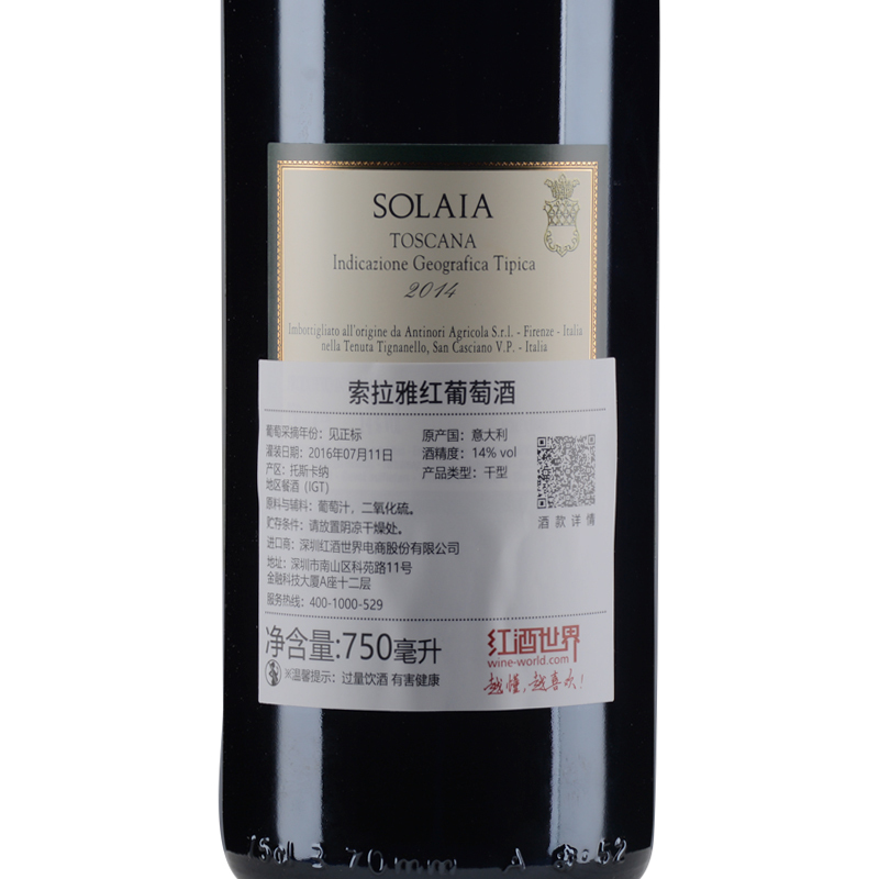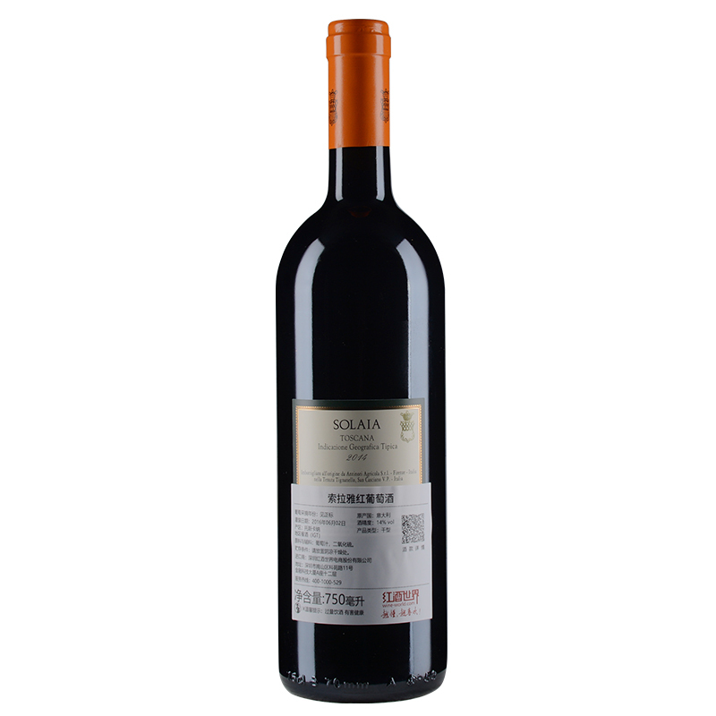 2014年索拉雅红葡萄酒 (托斯卡纳IGT 该酒款因酒庄装瓶批次不同,背标有三个灌装日期,随机发货)