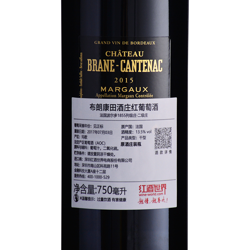 2015年布朗康田酒庄红葡萄酒 (法国1855二级庄 不同进口批次因酒庄装瓶时间不同,酒款背标的灌装日期有所差异,随机发货)