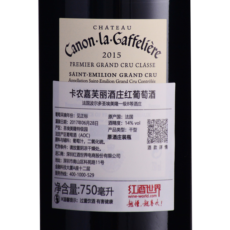 2015年卡农嘉芙丽酒庄红葡萄酒 (法国圣埃美隆一级B等酒庄 每位客户限购2瓶)