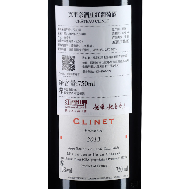 这是一款来自法国波尔多右岸波美侯(Pomerol)产区的红葡萄酒,产自著名酒庄克里奈酒庄(Chateau Clinet)。2015年份,克里奈酒庄梅洛(Merlot)葡萄的采收从9月15日持续至10月1日,在10月1日酒庄当天收获了全部的赤霞珠(Cabernet Sauvignon)和品丽珠(Cabernet Franc)葡萄。果实汁经发酵后进入了65%新的法国橡木桶中熟成。此款红葡萄酒呈深宝石红色,散发着花朵、黑樱桃、覆盆子、茴香饼干、香料盒、梅子及一丝浓缩咖啡的香气。酒款单宁充沛丝滑,口感撩人,味道丰富集中,酒体饱满,颇具活力。