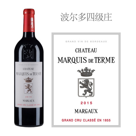 这是一款来自法国波尔多产区玛歌村(Margaux)的红葡萄酒,是1855四级庄(Fourth Growth)——德达侯爵酒庄( Chateau Marquis de Terme,又名:德达蒙侯爵庄园)的正牌酒。相比酒庄其他年份的葡萄酒,2015年份的这款酒品质十分优秀。此酒散发出黑醋栗、黑樱桃和李子的芬芳,并缀有一丝灌木丛、薰衣草和普罗旺斯草本植物的气息,酒体中等,果味凝练,单宁成熟且有颗粒感,十分清新,余味中缀有泥土气息。