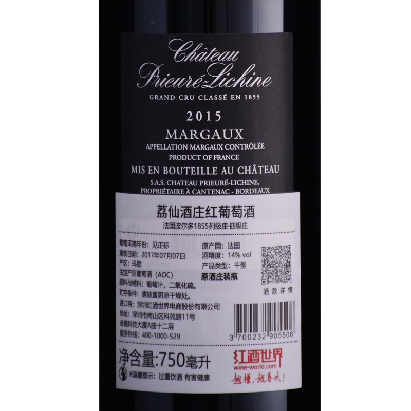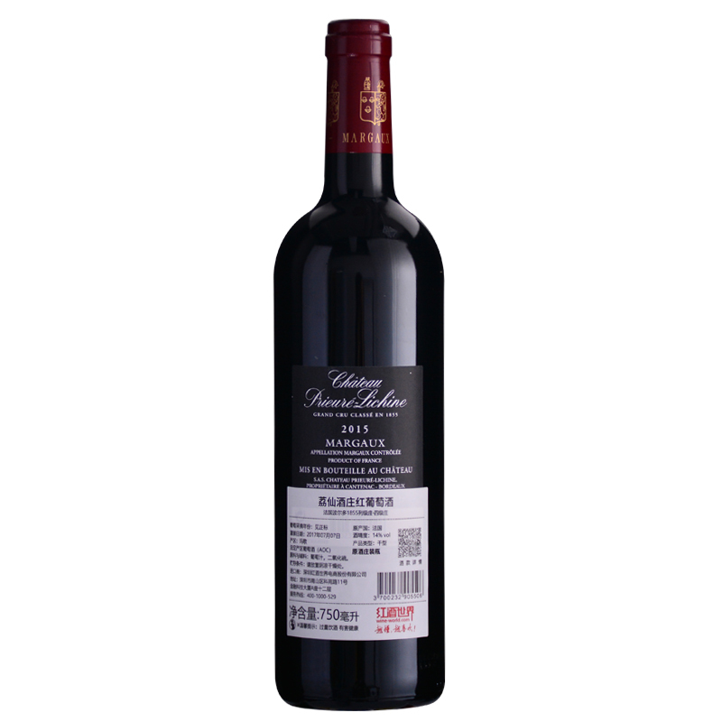 2015年荔仙酒庄红葡萄酒 (法国1855四级庄 不同进口批次因酒庄装瓶时间不同,酒款背标的灌装日期有所差异,随机发货)