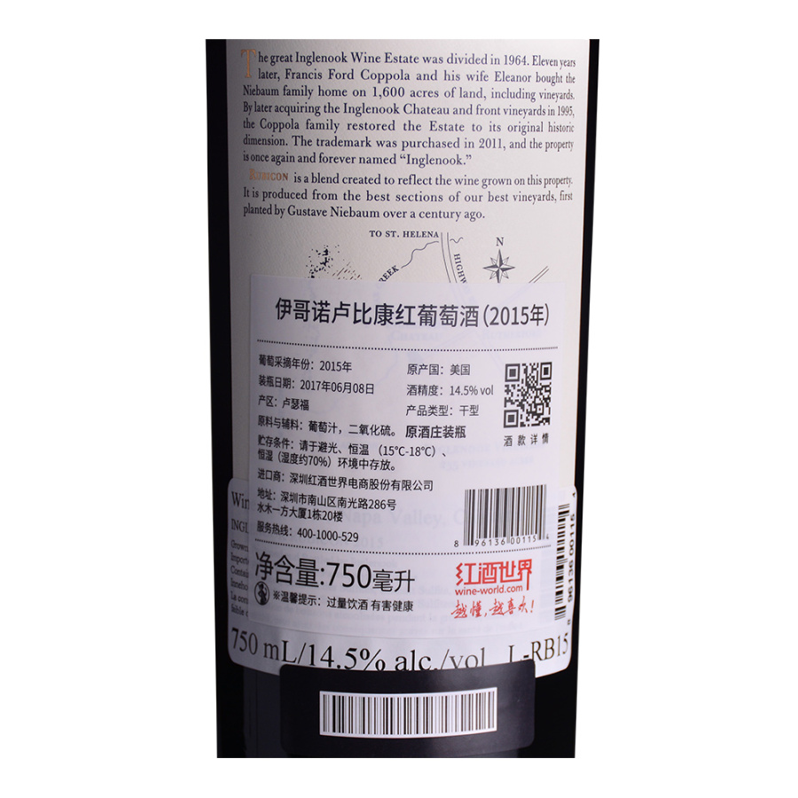 2015年伊哥诺卢比康红葡萄酒 美国-纳帕谷 赤霞珠 梅洛2 品质服务 品质服务