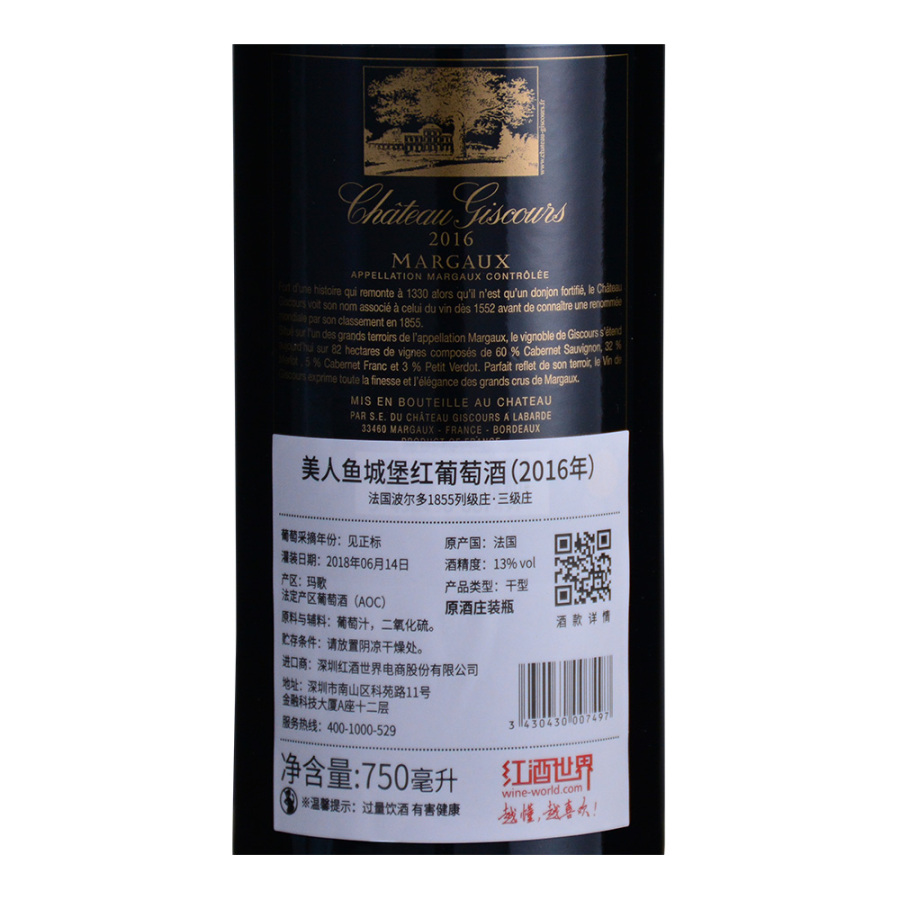 2016年美人鱼城堡红葡萄酒 (法国1855三级庄)