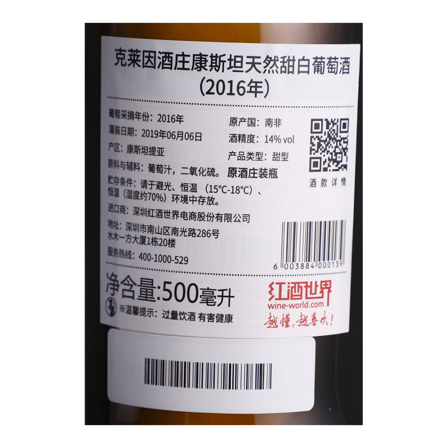 2016年克莱因酒庄康斯坦天然甜白葡萄酒