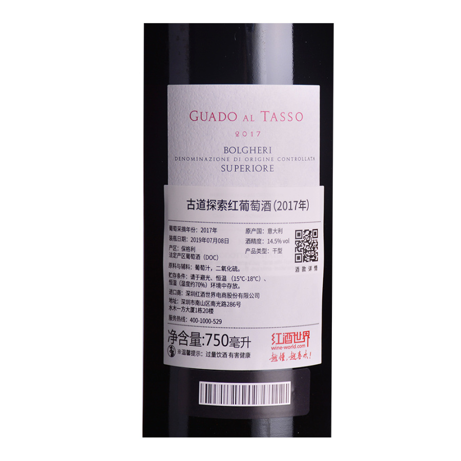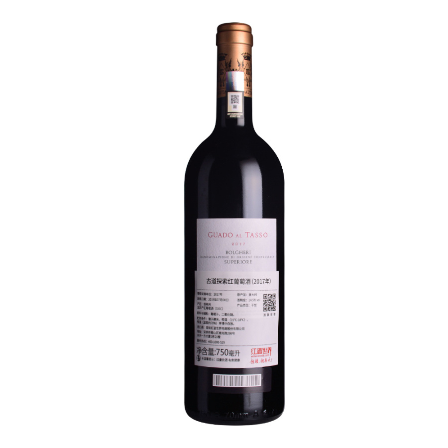这款红葡萄酒来自意大利托斯卡纳的保格利产区,由意大利的知名葡萄酒集团——安东尼世家出品。此酒呈现出浓郁的宝石红色,香气纯净,散发着覆盆子、草莓、蔓越莓、黑醋栗、黑莓和樱桃等丰富而浓郁的水果香气,伴随着月桂和薄荷的气息。其单宁细密而平滑,口感饱满而柔和,余味浓郁,具有可观的陈年潜力。
