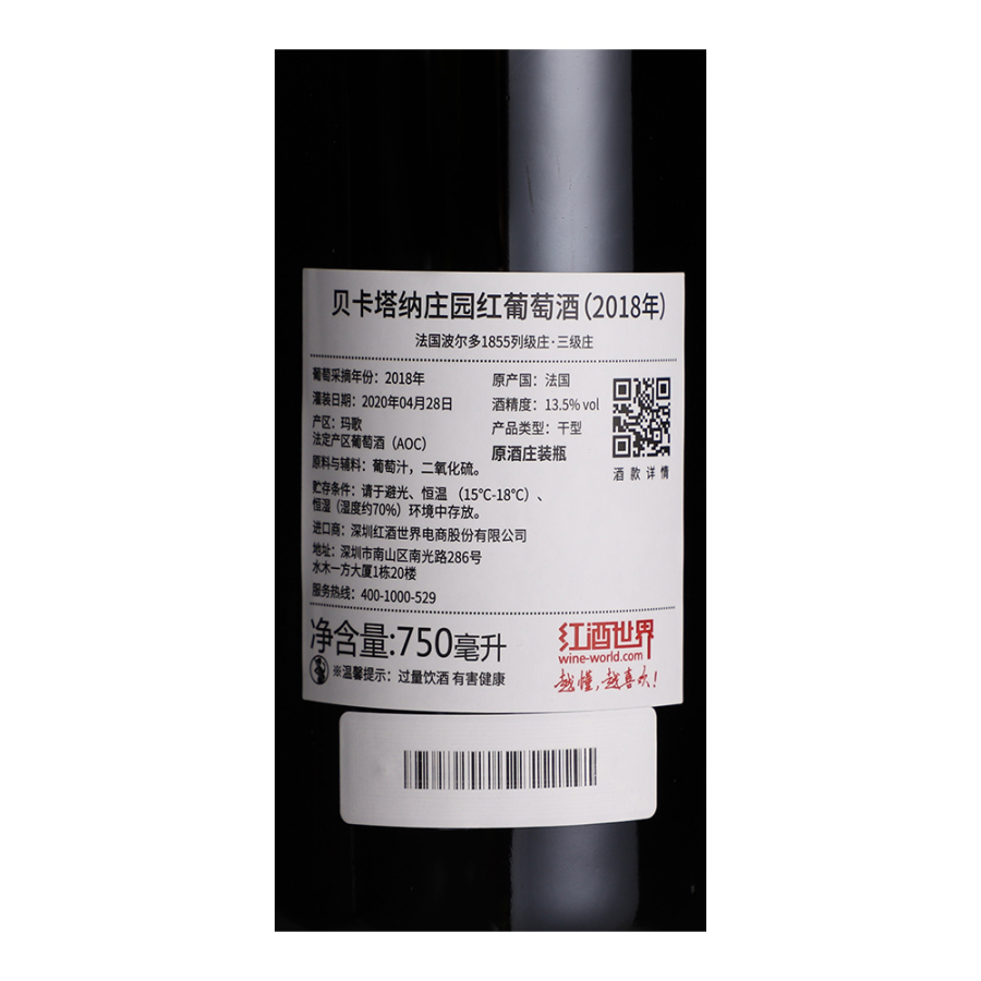【期酒】 2018年贝卡塔纳庄园红葡萄酒 (法国1855三级庄)
