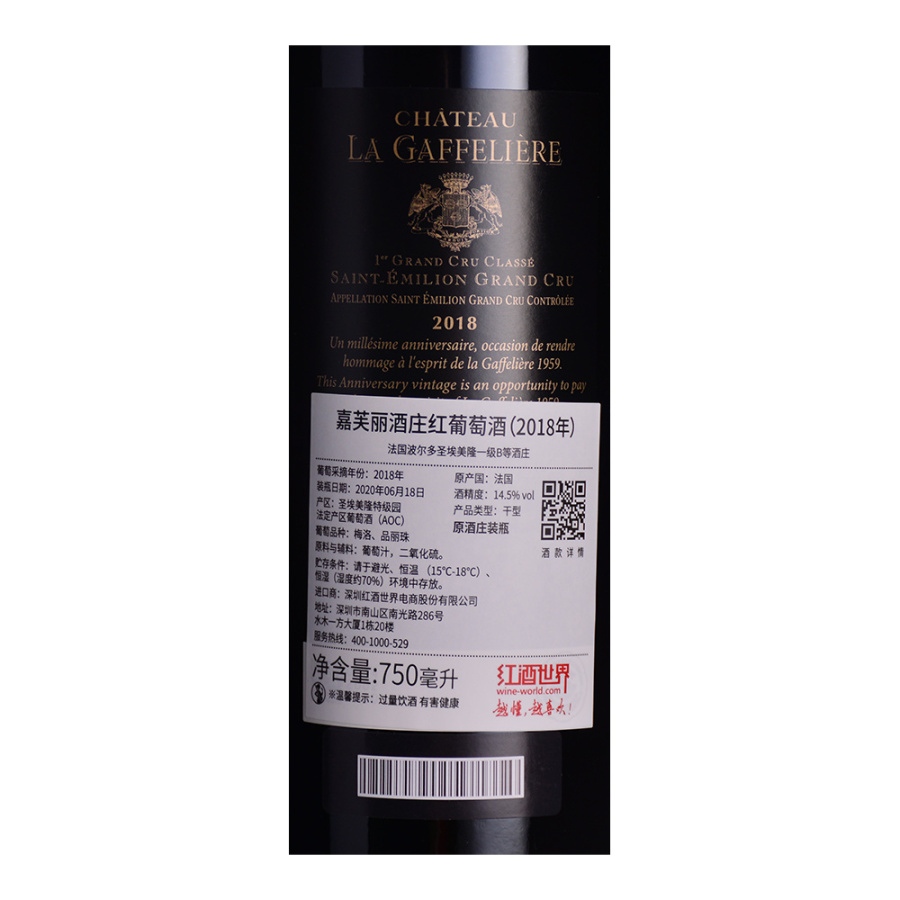 【期酒】 2018年嘉芙丽酒庄红葡萄酒 (法国圣埃美隆一级B等酒庄)