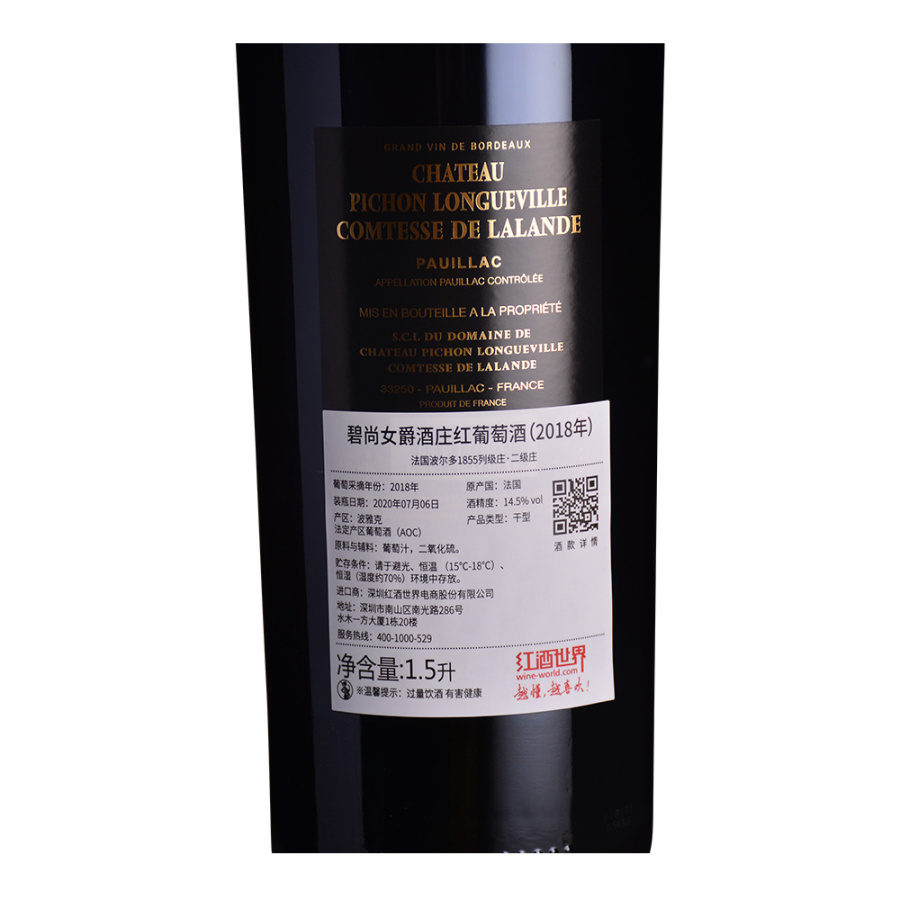 【期酒】 2018年碧尚女爵酒庄红葡萄酒(1.5L大瓶装) (法国1855二级庄)