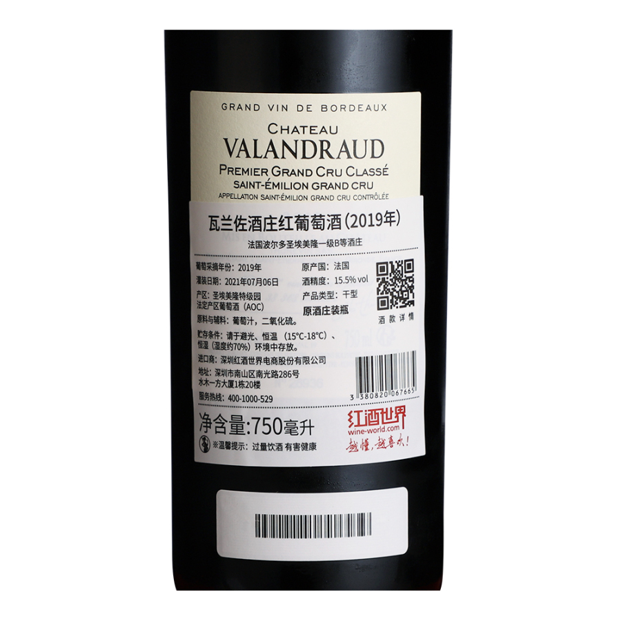 【期酒】 2019年瓦兰佐酒庄红葡萄酒 (法国圣埃美隆一级酒庄)