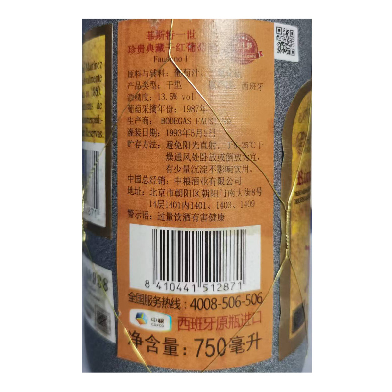 1987年菲斯特一世珍贵典藏干红葡萄酒 西班牙里奥哈 丹魄 佳丽酿2 品质服务 品质服务