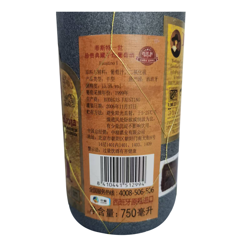 1999年菲斯特一世珍贵典藏干红葡萄酒 西班牙里奥哈 丹魄 佳丽酿2 品质服务 品质服务