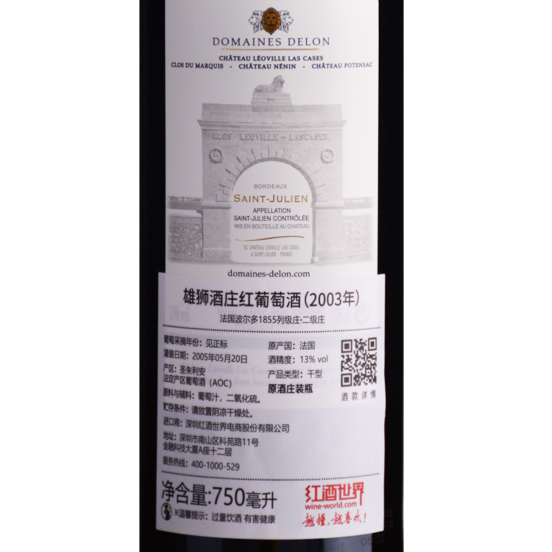 2003年雄狮酒庄红葡萄酒 (法国1855二级庄)