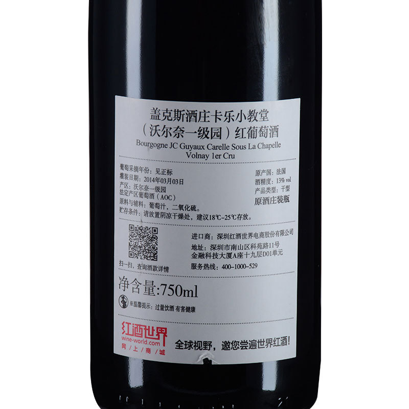 2004年盖克斯酒庄卡乐小教堂(沃尔奈一级园)红葡萄酒 (法国勃艮第·一级园)