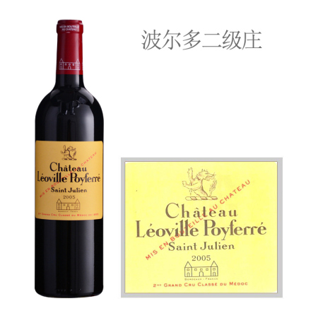 这是一款来自法国波尔多产区圣朱利安村(Saint-Julien)的红葡萄酒,是1855二级庄——乐夫宝菲庄园(Chateau Leoville-Poyferre)的正牌酒。2005年份的这款酒呈深红色,香气诱人,雪茄盒、烟草、醋栗、黑莓和湿泥土的气息扑鼻而来,酒体饱满,单宁精细坚实,风格纯净,质地柔顺,陈年潜力十分优秀。