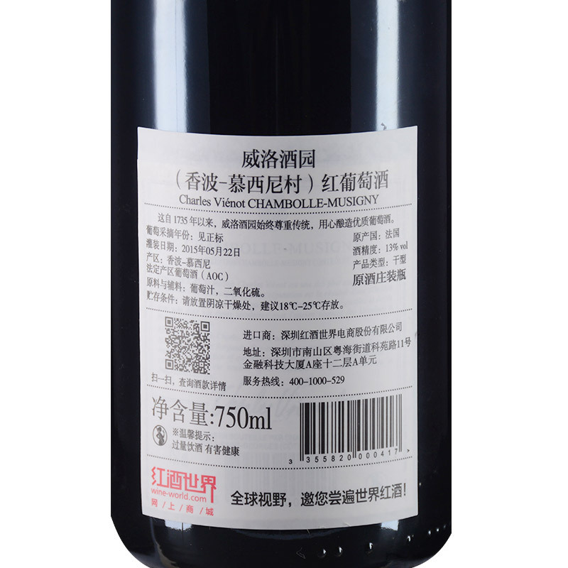 这是一款来自法国香波-慕西尼产区的红葡萄酒,由黑皮诺酿制。经典的香波-慕西尼酒酒力强劲,但又不乏精致之感,芳香四溢,风味丰富,优雅平衡。它与沃恩-罗曼尼、热夫雷-香贝丹产区适宜种植黑皮诺葡萄,用此种葡萄酿制出来的酒品质卓越,可谓“前无古人,后无来者”。这一款红葡萄酒呈清亮的宝石红色,散发出纯净的红色浆果果香,夹杂着香草以及香料的风味,口感均衡。