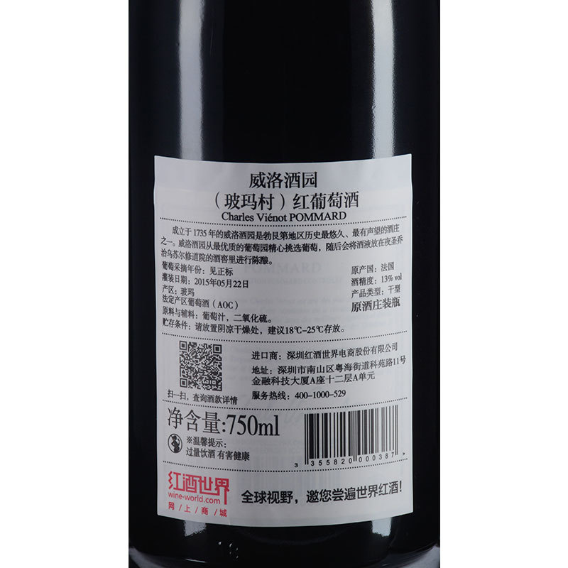 这是一款来自法国玻玛产区的红葡萄酒。玻玛产区的土质为石灰岩和红色粘土,这为该区葡萄的生长提供了优越的条件。这款威洛酒园(玻玛村)红葡萄酒呈深红色泽,含黑樱桃等黑色水果,以及橡木、丁香等香料的味道,还透着丝丝泥土的气息,余味悠长,陈年潜力8-15年。适饮温度为15-16℃,饮用前需醒酒2小时。