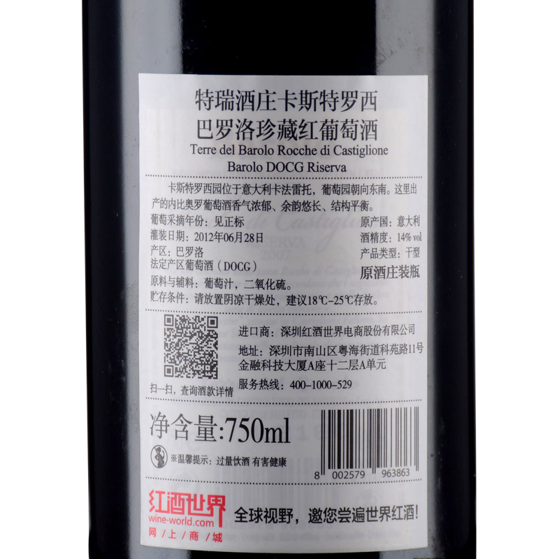 2007年特瑞酒庄卡斯特罗西巴罗洛珍藏红葡萄酒 (巴罗洛DOCG)
