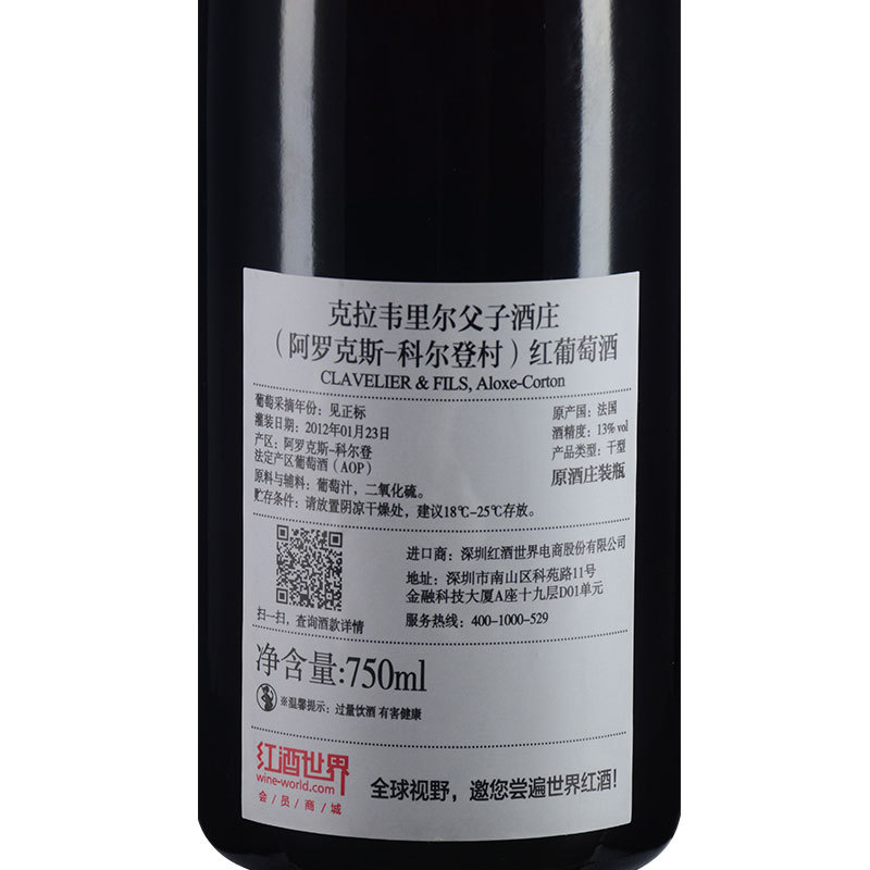 2008年克拉韦里尔父子酒庄(阿罗克斯-科尔登村)红葡萄酒 (法国勃艮第·村庄级)