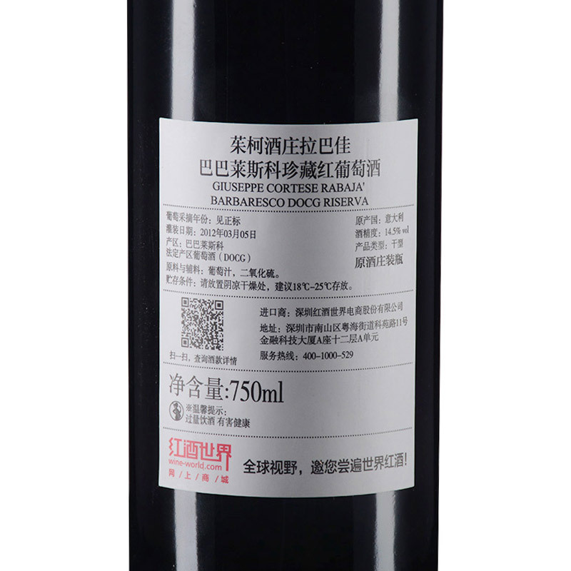 推荐巴巴莱斯科明星酒庄茱柯酒庄的代表作,只在巨好的年份生产。酿酒葡萄来自巴巴莱斯科三大顶级名园之一的Rabaja。酒液在斯洛文尼亚和法国桶中陈酿40个月,上市前在瓶中熟化至少3年,结构强劲且巨具层次感。RP官网评分95+,全球仅酿6000瓶!适饮期为2018-2038。