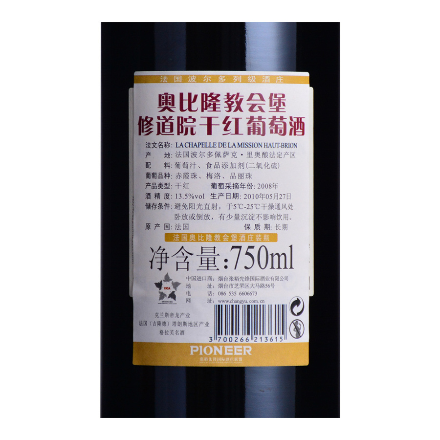 2008年奥比隆教会堡修道院干红葡萄酒(小美讯)