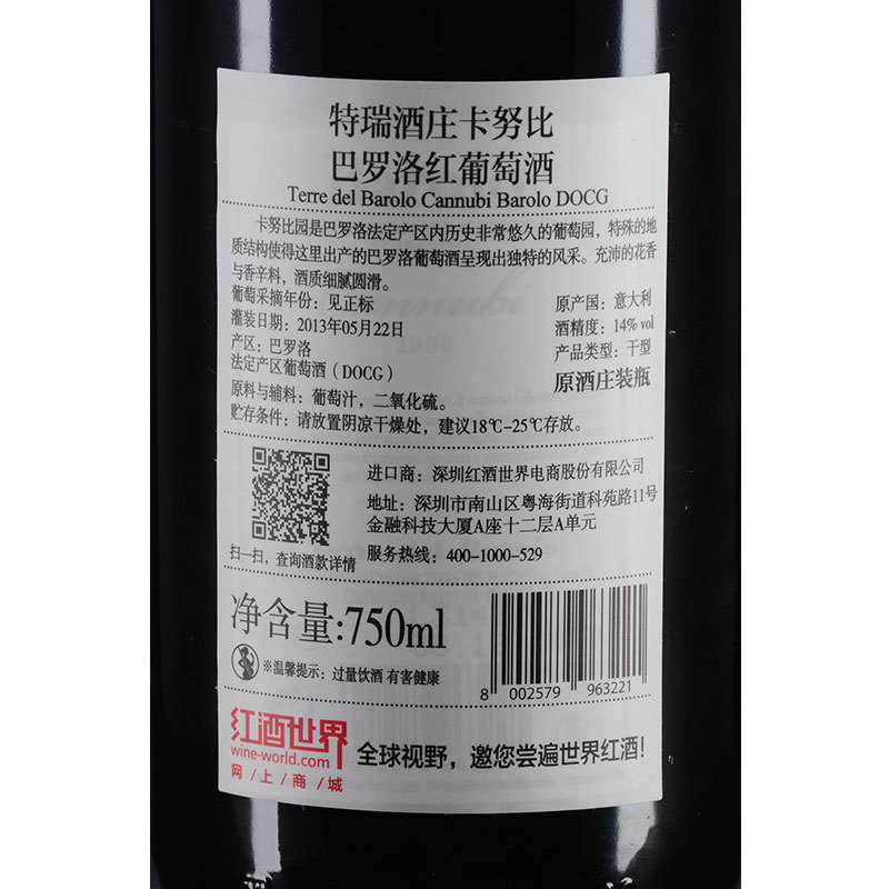 2008年特瑞酒庄卡努比巴罗洛红葡萄酒 (巴罗洛DOCG)