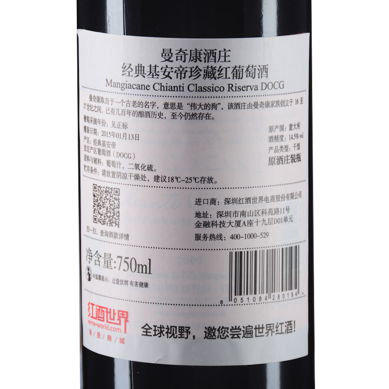 曼奇康酒庄 经典基安帝 科罗里诺2 桑娇维塞 品质服务 品质服务