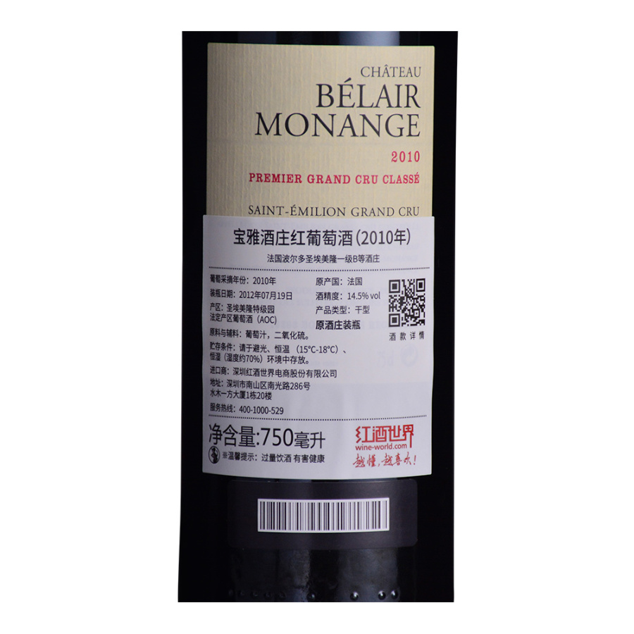 2010年宝雅酒庄红葡萄酒 (法国圣埃美隆一级酒庄)