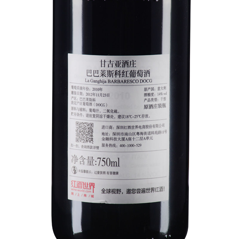2010年甘吉亚酒庄巴巴莱斯科红葡萄酒 (巴巴莱斯科DOCG)