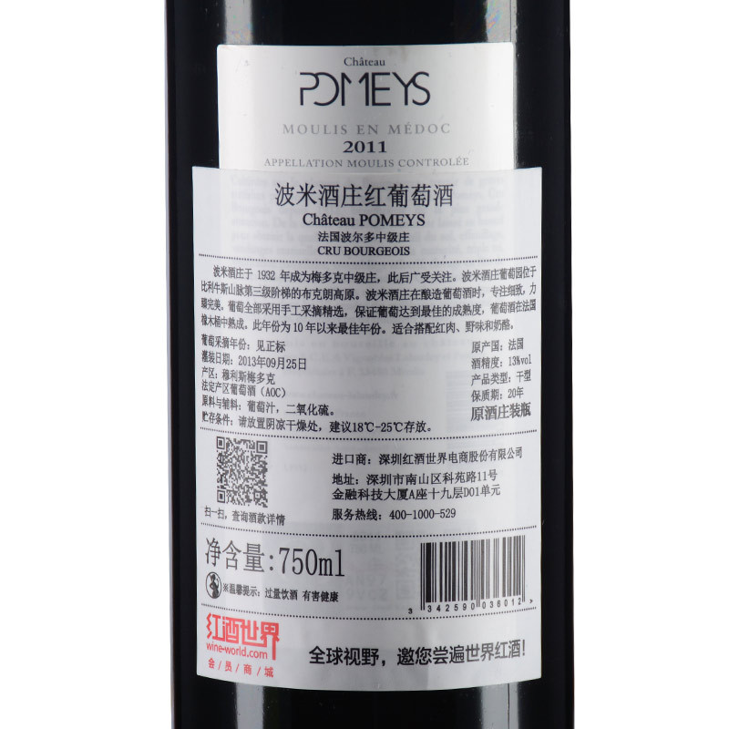 2011年波米酒庄红葡萄酒