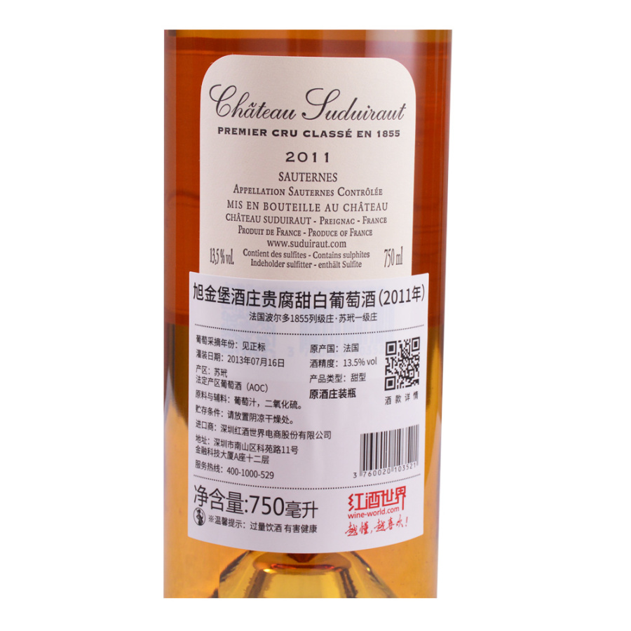 2011年旭金堡酒庄贵腐甜白葡萄酒 (苏玳及巴萨克一级庄)