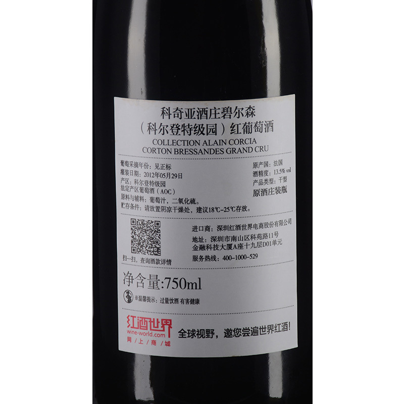 2011年科奇亚酒庄碧尔森(科尔登特级园)红葡萄酒 (法国勃艮第·特级园)