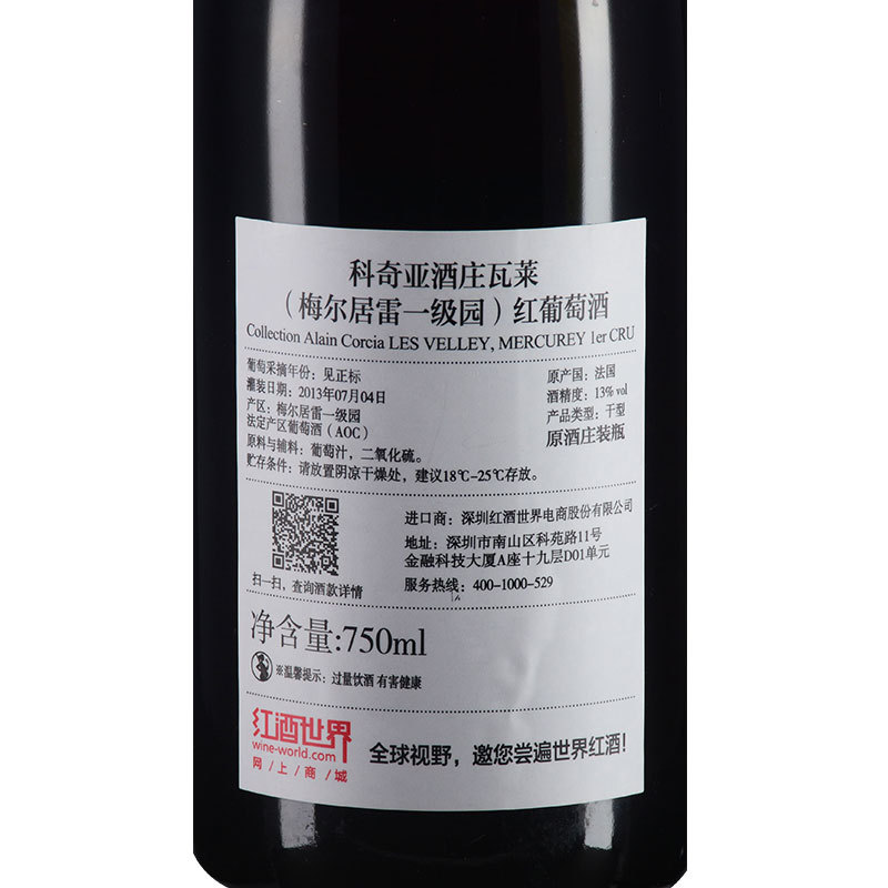 2011年科奇亚酒庄瓦莱(梅尔居雷一级园)红葡萄酒 (法国勃艮第·一级园)