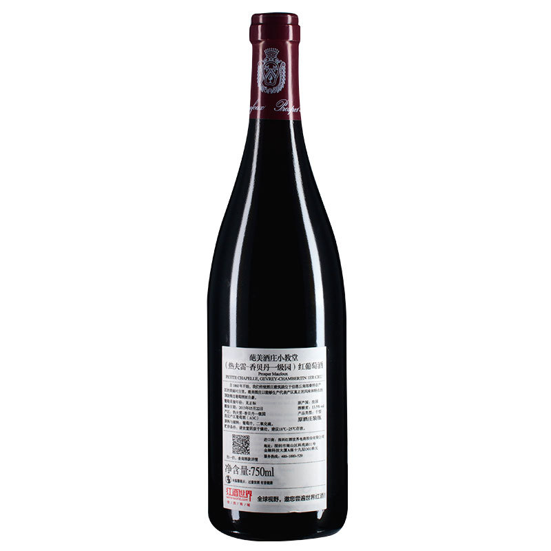 这款酒由历史悠久的勃艮第名庄——葩美酒庄酿造而成。其酿酒葡萄来自热夫雷-香贝丹村(Gevrey-Chambertin)的小教堂(Petite Chapelle)一级园。小教堂位于热弗雷-香贝丹村的南侧,非常靠近特级园夏贝尔-香贝丹(Chapelle-Chambertin),这里的土层深厚,富有层次,造就了浓郁、饱满而又富有层次感的葡萄酒,酿造的葡萄酒单宁充沛而又不失细腻,口感醇厚。此外,该酒拥有较好的陈年潜力,在陈年过程中不断涌现出菌菇、森林湿地等较为复杂的香气,值得细细品味一番。