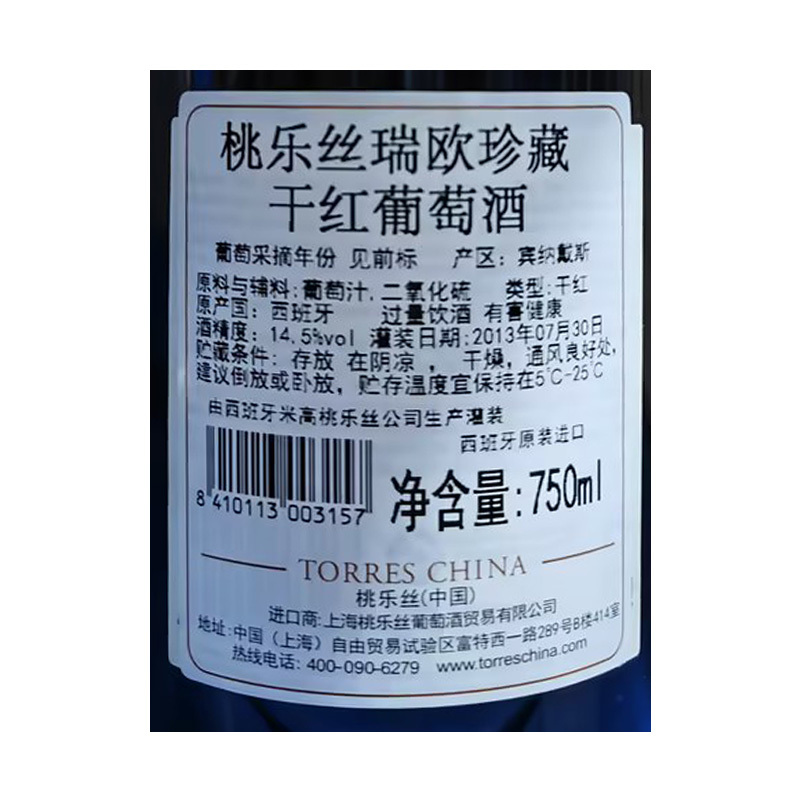 2011年桃乐丝瑞欧珍藏干红葡萄酒