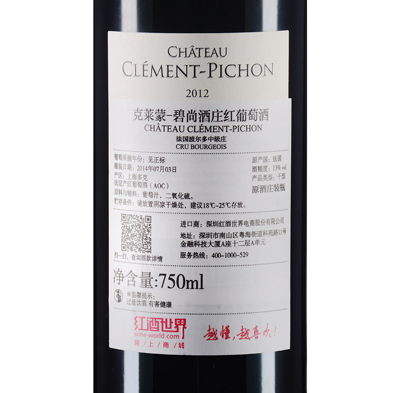 2012年克莱蒙-碧尚酒庄红葡萄酒