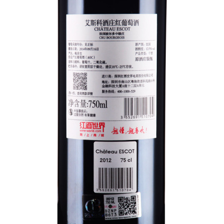 【特惠整箱购】2012年艾斯科酒庄红葡萄酒【六瓶套装】