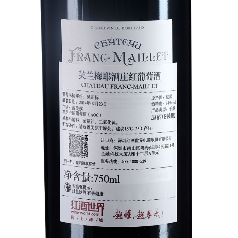 芙兰梅耶酒庄 法国波尔多-波美侯 梅洛 品丽珠2 品质服务 品质服务
