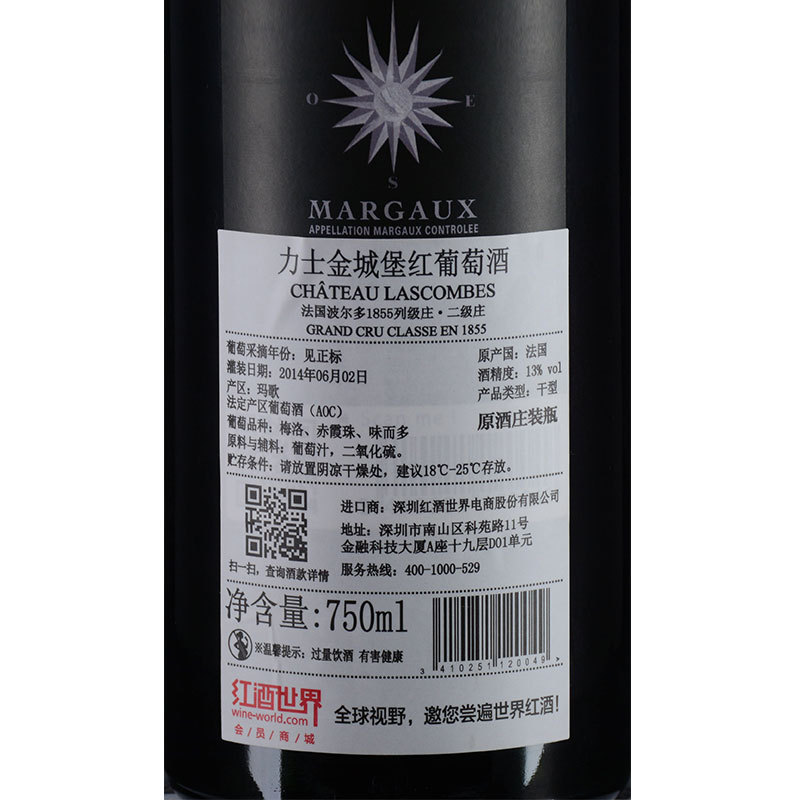 2012年力士金城堡红葡萄酒 (法国1855二级庄)