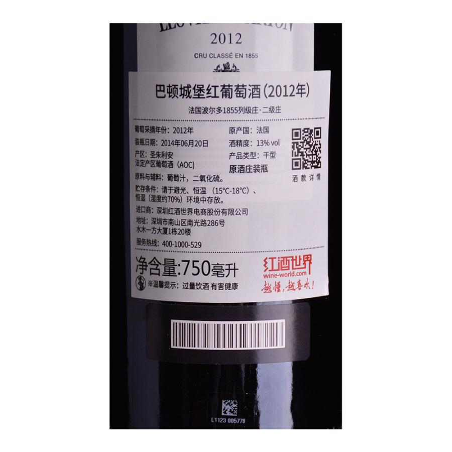 2012年巴顿城堡红葡萄酒 (法国1855二级庄)