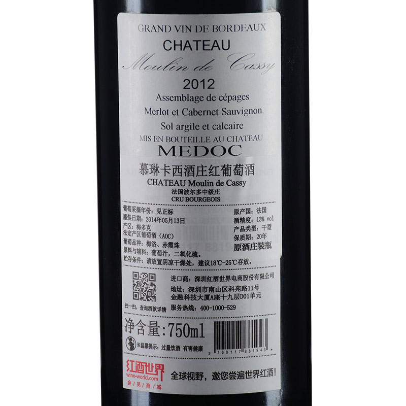 慕琳卡西酒庄 法国波尔多-梅多克 梅洛 赤霞珠2 品质服务 品质服务