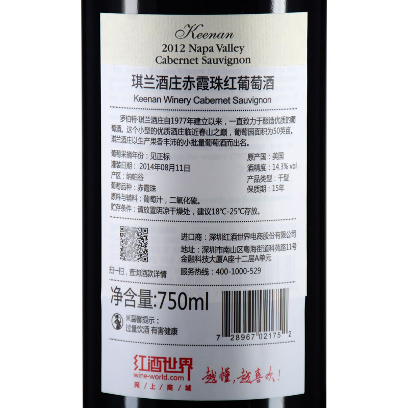 2012 Keenan Winery Cabernet Sauvignon, Napa Valley, USA