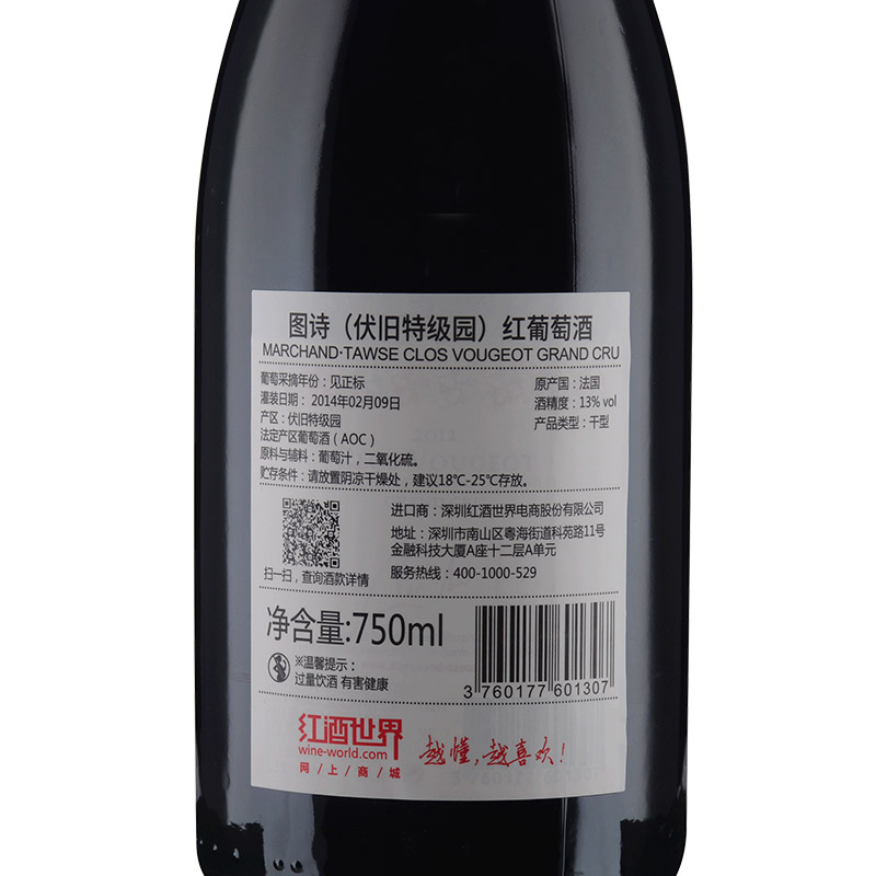 2012年图诗(伏旧特级园)红葡萄酒 (法国勃艮第·特级园)